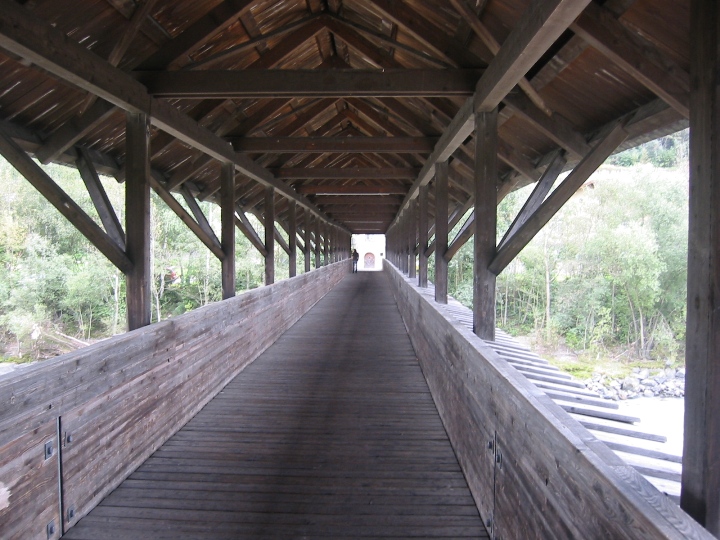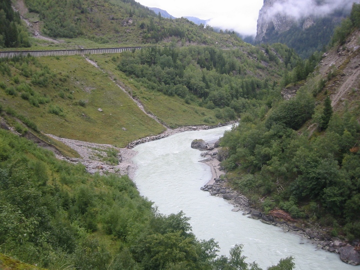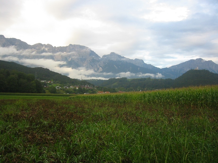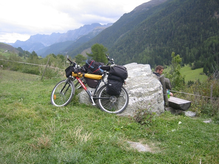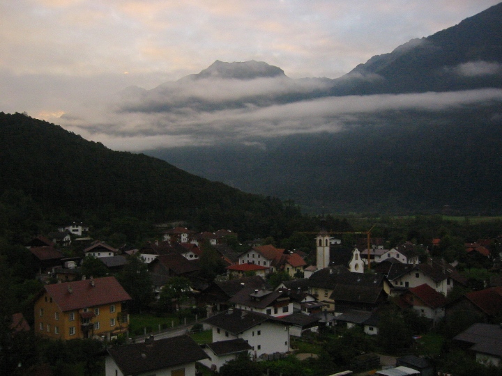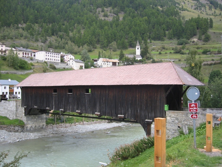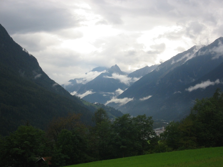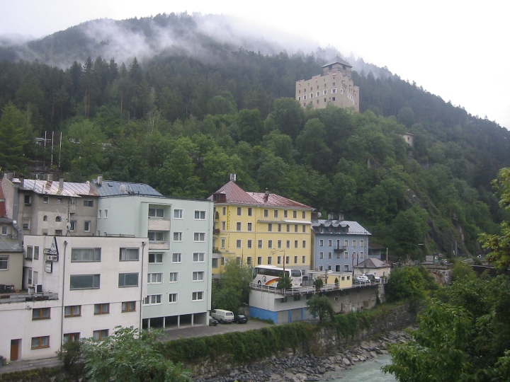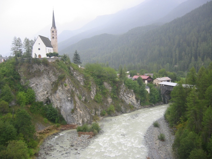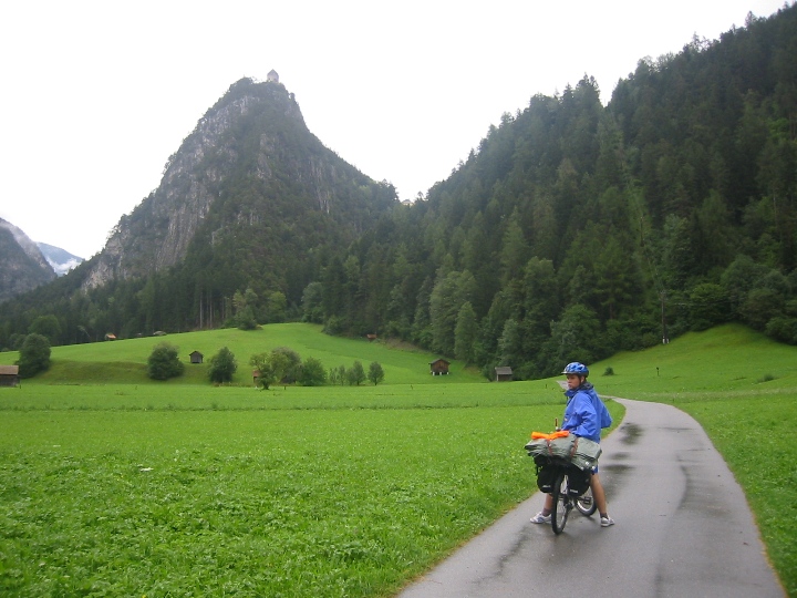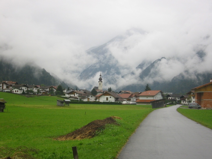 It's still raining. We go along a road to the border with Austria for a certain distance, then again on bicycle paths. On the way, the larger town is Landeck. The route becomes quite tiring for us novices. It was supposed to be downhill, but in each side valley you first have to go deeper into the valley to cross a bridge with a tributary, and only then go back down the hill to the Inn. In the evening we look for accommodation in the small town Motz. It was Sunday, we stopped in front of the church. There it was immediately realized that we are looking for accommodation. A nice lady gave me the address and showed me the direction, saying that her husband was at home, so we could settle in. I didn't really remember the name of the street, but I quickly found the number. I knock, a surprised man comes out and declares that he doesn't have any accommodations and, by the way, he doesn't have a wife either. So it was a mistake... We drove a few more streets, which (fortunately) did not have a given number, so that we could finally find the right one and make it to Sunday mass.