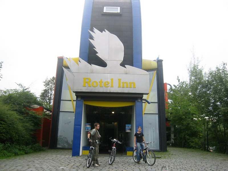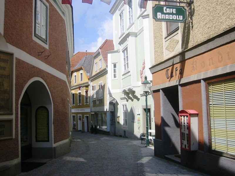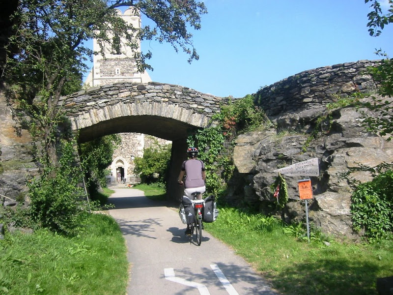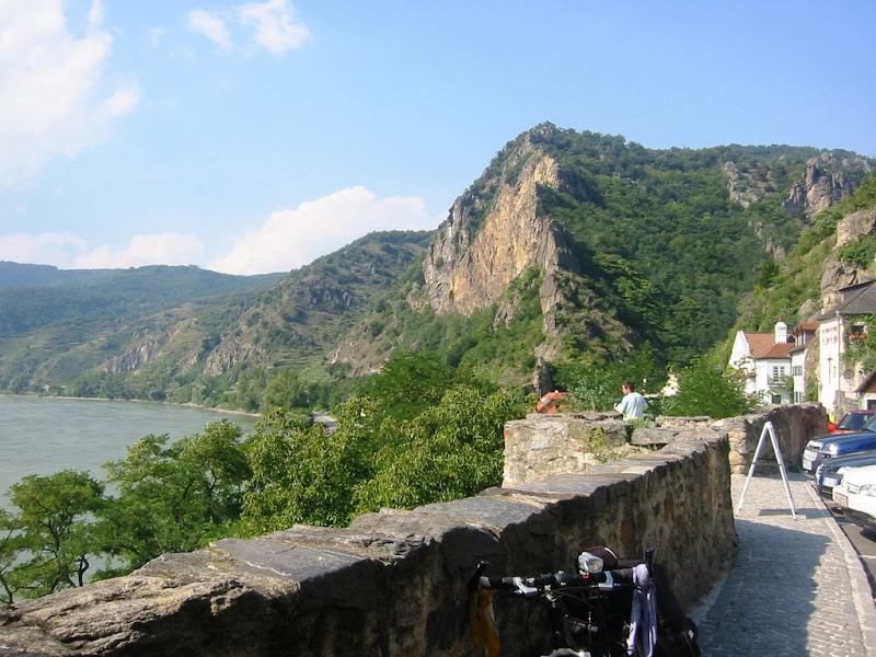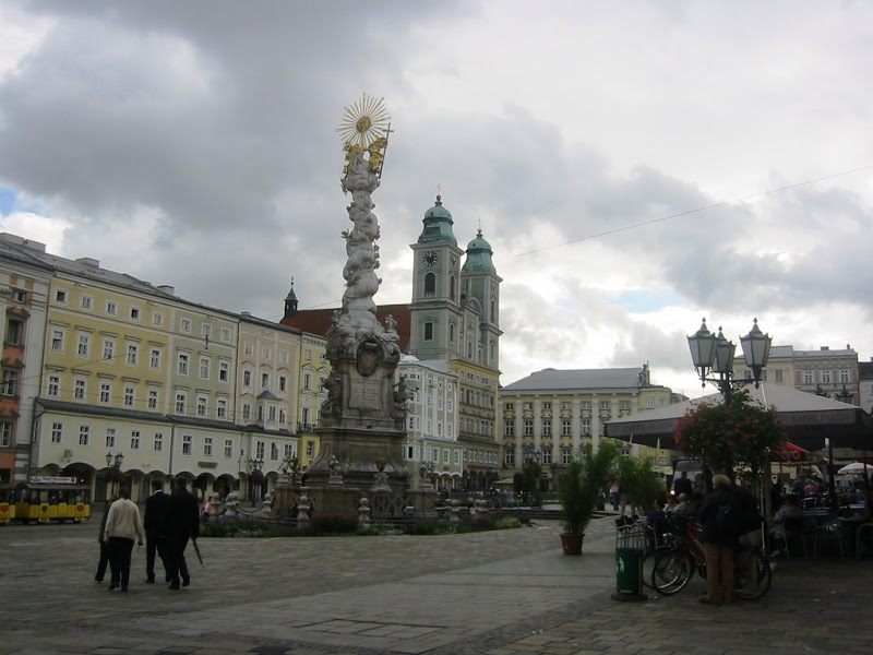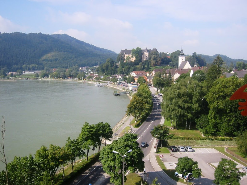 In the morning, during breakfast, we learn from the hosts that we are the first Poles they host. Before us there were Czechs and guests from Africa. We are inLinzaround noon. We see the interesting market square and the cathedral and then move on. We pass throughMauthausen. We didn't see any signposts to the former camp. The city prefers to be associated with its strange architecture rather than its gloomy past. Before evening we are in the townGrein. Before entering the town there was a sign to private accommodation. We drove towards the nearest address. The landlady said there were no places at her place, but she immediately called her friends and said that she had three Italians here. I saw no reason to disabuse her, so after thanking her we went to our quarters.