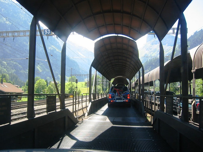Here we go. We are driving through Baden-Württemberg south through Basel and Bern. The destination is Visp in the Rhone Valley between the Bernese and Welsh Alps. You can get there in two ways: either by driving around the Bernese Alps from the west, or via a shorter route through a tunnel under the Bernese Alps chain. We choose the second way. The attraction of this route is the train ride, which takes us and the dark car about 30 km through a tunnel. We have booked accommodation in Visp. We check in, leave our bikes and luggage and start with a sightseeing car trip to the Saas-Fee Valley. We were hoping that we would be able to take the cable car somewhere in the upper part of the valley, but we were too late and the ski lifts were no longer running. We walked around the valley, looked at the four-thousanders and returned to Visp for the night.