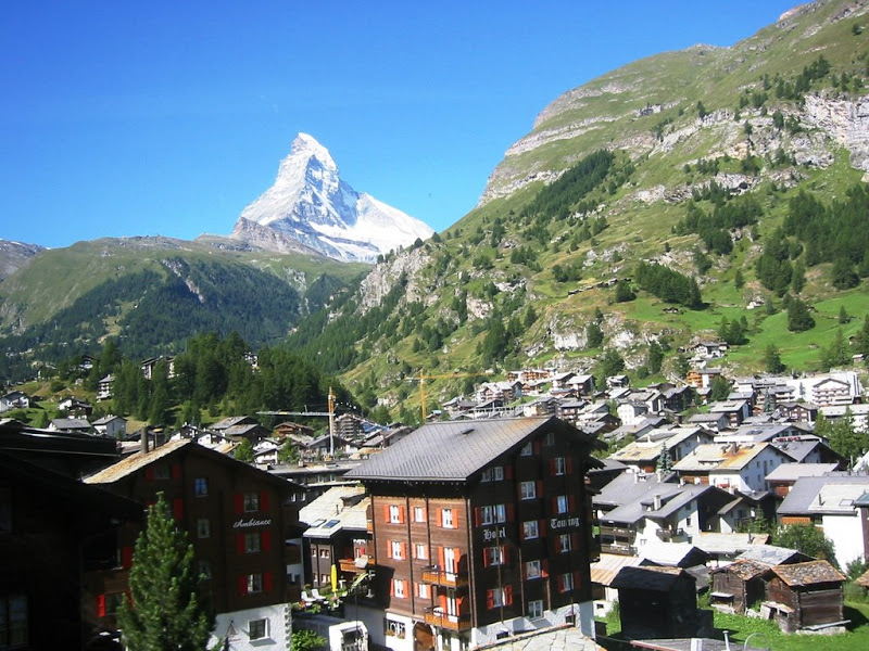 Today we will see the famous Matterhorn and the most powerful mountain massif of the entire Alps - Monte Rosa. By car we get to Tasch, then to Zermatt you can only take local buses. We board the Gornergrat cable car, which takes us to an altitude of 3,100 m above sea level. Before us is a beautiful view of a chain of fourteen 4,000-meter peaks from Monte Rosa to the Matterhorn. It's breathtaking. We now descend the long trail down the Zermatt Valley. There is a small lake along the way. The Matterhorn is reflected in each of them. As for the protection of this unique landscape, then we are quite surprised. A dog falls into an idyllic lake. It chases through the water and finally flies out with a fish attached to its tail, which causes general hilarity among all the tourists.