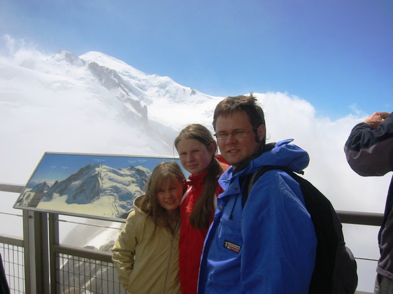 Bicycles on the roof. We're coming back, but not right away. In Martigny we head towards Chamonix. We go up a very steep serpentine, then go down and we are already at the foot of Mont Blanc. Mountains in the fog. We buy tickets for the cable car to Agile du Midi. We quickly found ourselves at an altitude of 3,900 m above sea level. The upper cable car station, restaurant and shop are carved in the rock, with a terrace surrounding it. There are moments when Mont Blanc emerges, then we quickly take photos. I admit that after two hours I was already feeling dizzy. We take the cable car back to the valley. We saw what is most important in the Alps, the trip was completed.